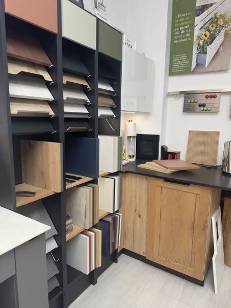 Notre show-room d'Aix-en-Provence ce relooke de ces nouvelles collections 2025/2026. De nouveaux coloris tendance mais aussi de nouvelles matières pour plus de plan de travail. Tous les meubles usuellement courant dans l'espace cuisine sont développables sur mesure mais l'agencement continu vers le salon par des niches et du mobilier personnalisable à souhait. Le retour des cadres vitrés restylisés ainsi que l'utilisation de la ferronnerie en fond en complément assurément différenciant. Toujours fidèle à la pierre naturel, plus de 30 modèles sont palpables en collaboration avec nos marbriers et avec 6 fournisseurs de plateaux complémentaires c'est peut être le plus large choix du pays d'Aix. On vous reçoit librement le samedi ou sur rendez-vous en semaine avec votre architecte d'intérieur pour privatiser l'espace et être dans les meilleures conditions de travail afin que ce moment de partage soit la meilleure cocréation de votre maison. Venez le constater par vous même et n'oubliez vos plans pour que nous leurs donnions vie par des 3D et des matières de qualités.